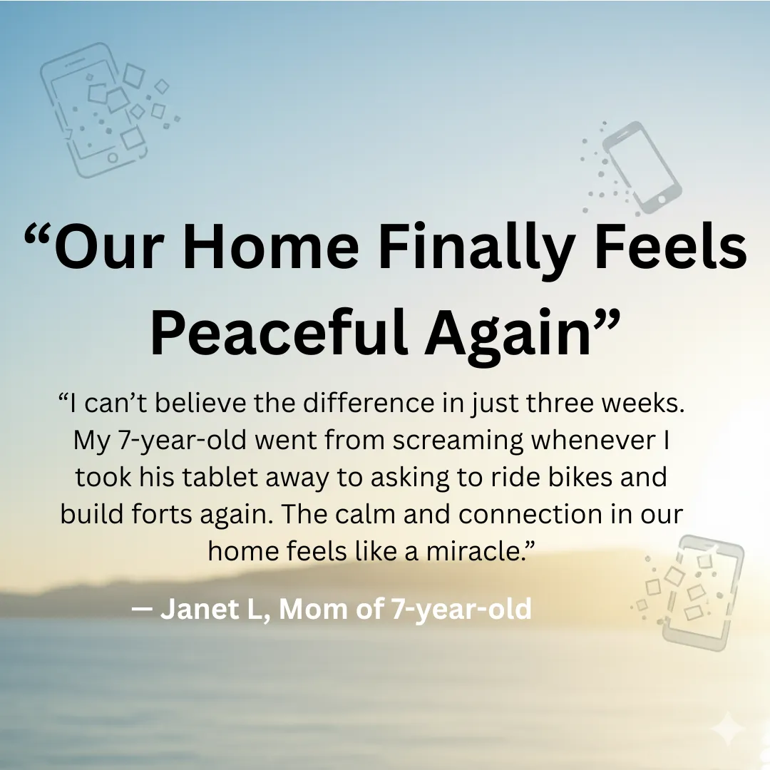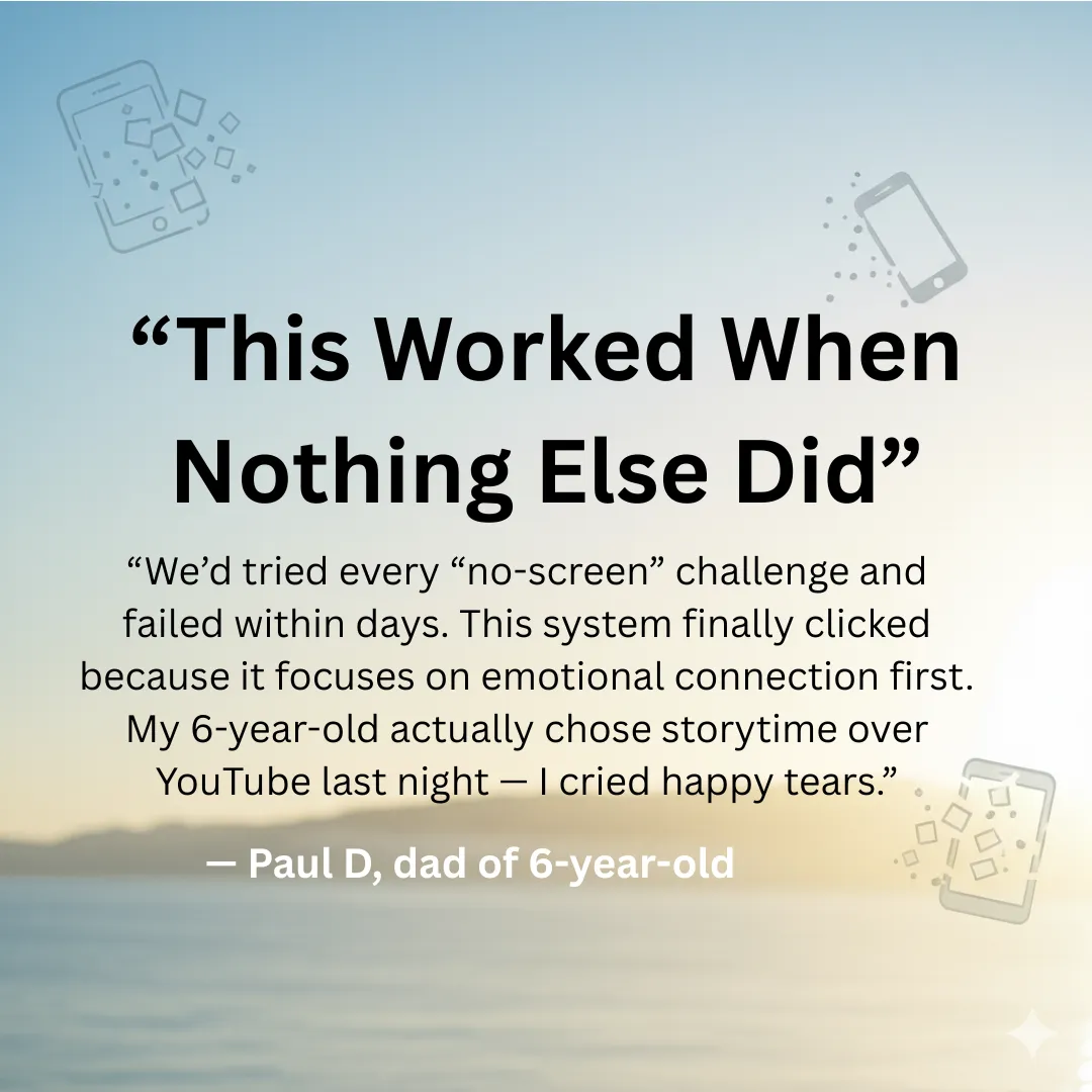While other parents struggle with escalating screen battles, you'll be reconnecting with your child using our proven system.